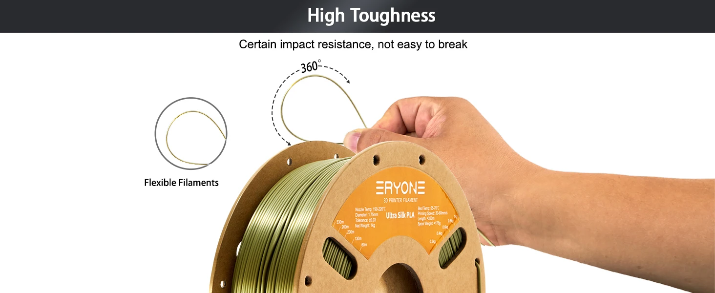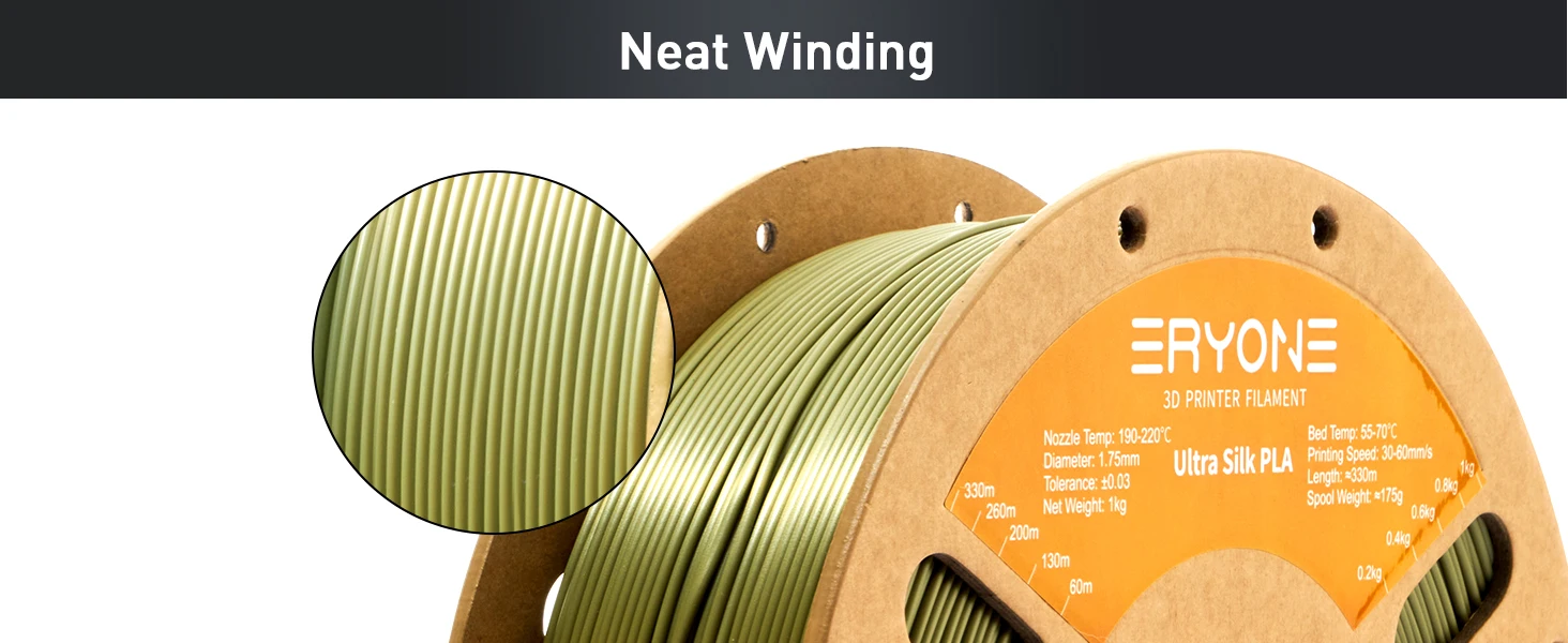 Eryone Ultra Silk PLA-Filament für 3D-Druck, 1 kg, 1,75 mm, verstopfungsfrei, hohe Qualität, perfekte Spule für 3D-Drucker/Stifte, Neu eingetroffen